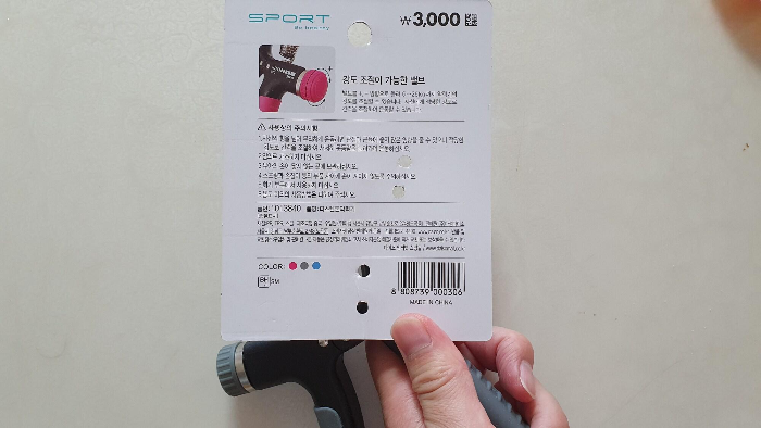 가끔씩 다이소 제품의 가격은 보고도 놀라지 않을 수 없다. 강약 조절 안되는 악력기는 단돈 1000원, 강도 조절이 가능한 악력기는 3000원이다. 도대체 어떻게 이 가격에 이런 제품을 만들 수 있는지!! 강도 조절은 밸브를 돌리면 된다.