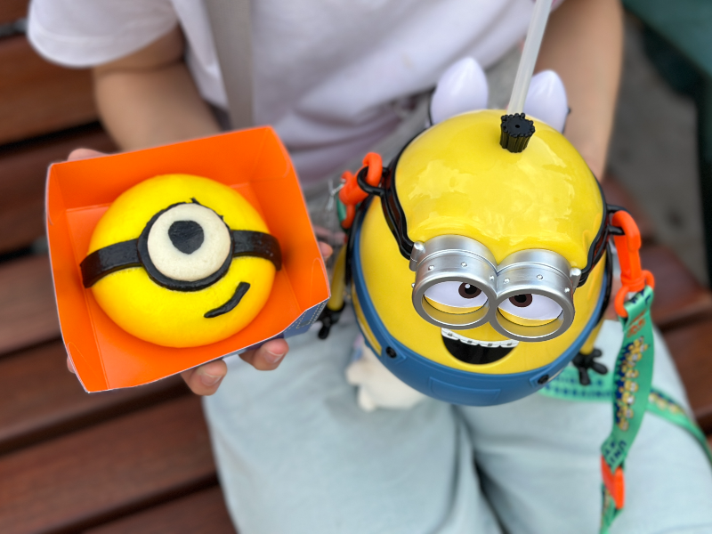 우리 딸내미는 다른 건 잘 버티다가 먹는 것에서 결국 하나씩 샀다. 미니언 빵은 700엔인데 맛은 그저 그렇다. 그리고 미니언 캐릭터 음료수를 하나 사 먹었다. 우리나라 돈으로 2만 원 정도 했던 것 같다.